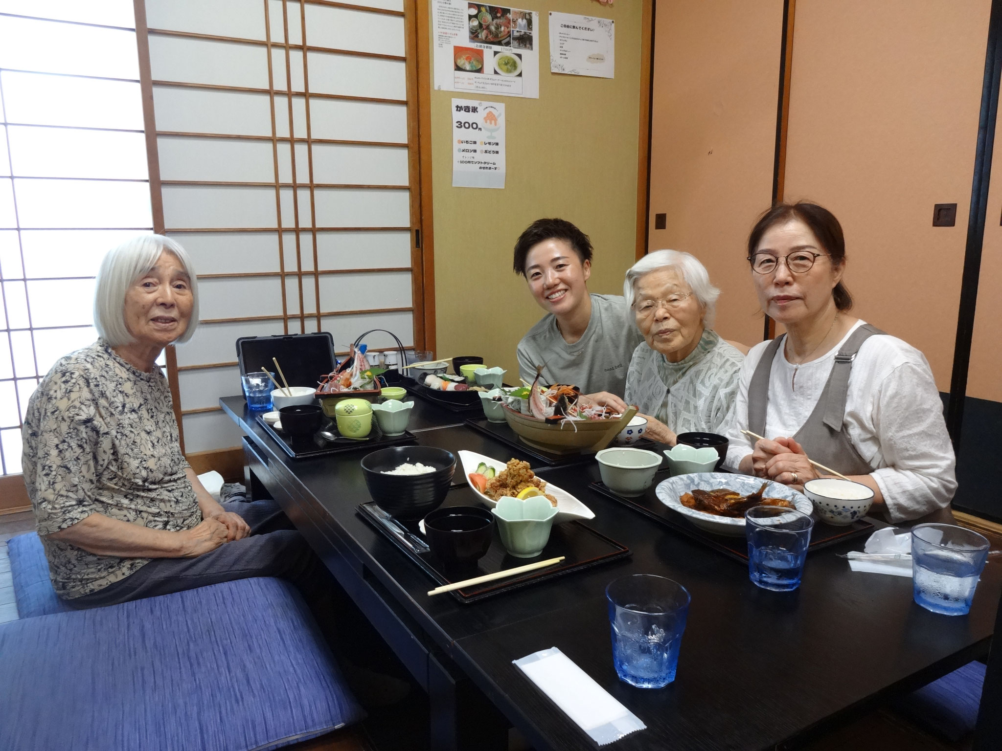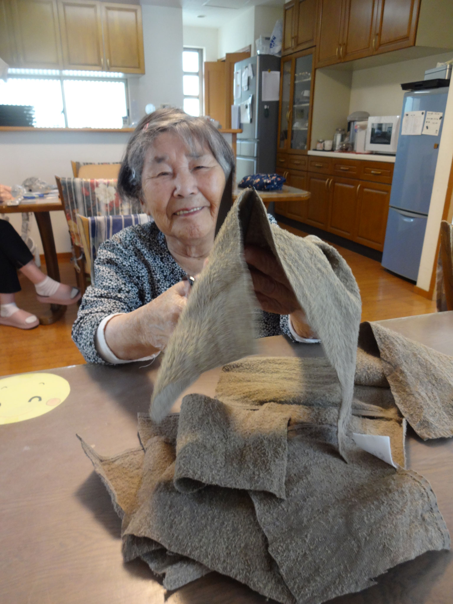 普段の何気ない時間も大切なひととき。食器洗いをお手伝いしてくれたり、新聞紙をたたんだり、利用者さん同士で仲良く椅子に座ってお話ししたり…そんな温かい日常の様子を写真におさめました。「これが毎日の楽しみやね」と、みなさんの笑顔が印象的でした。