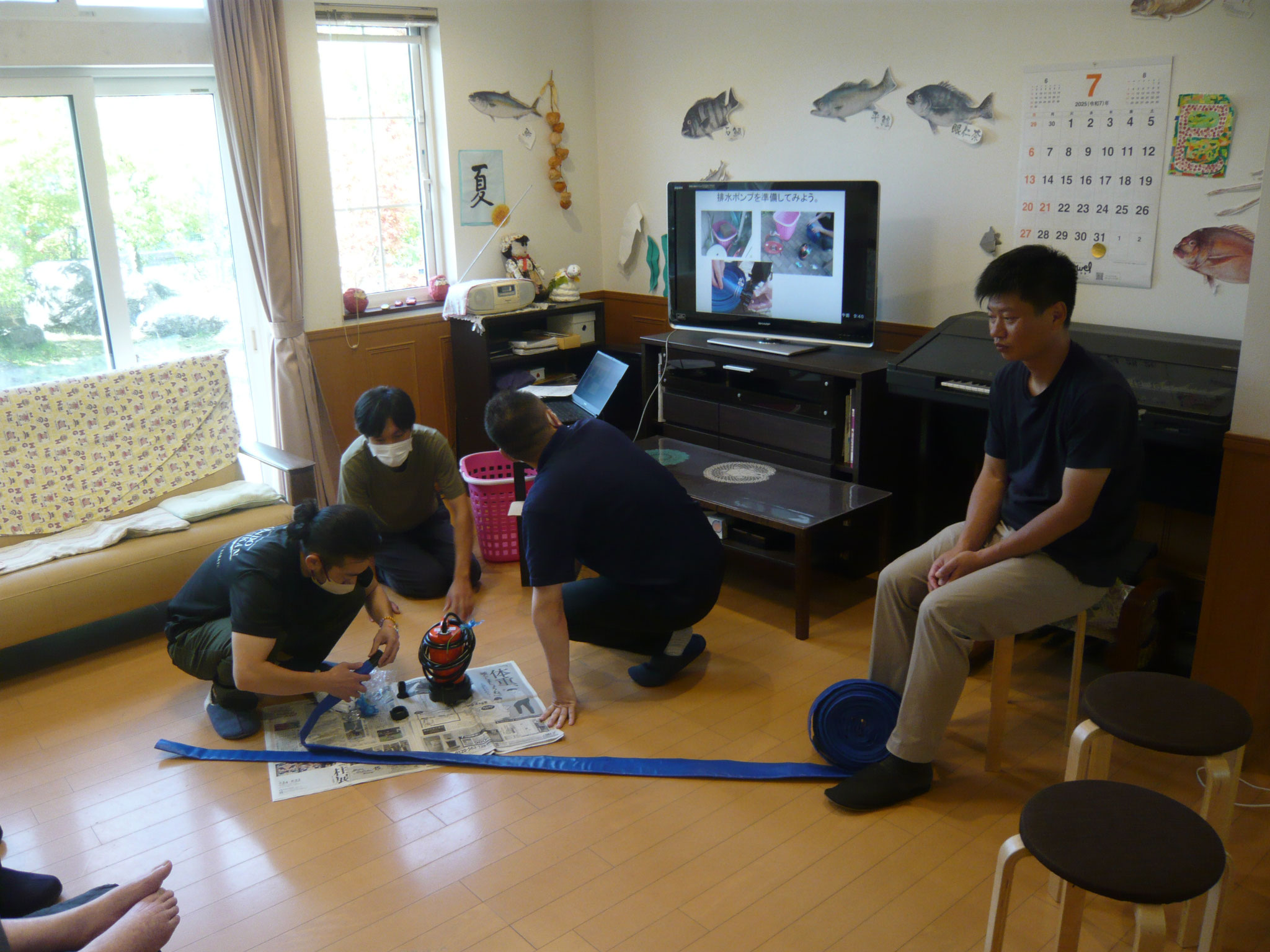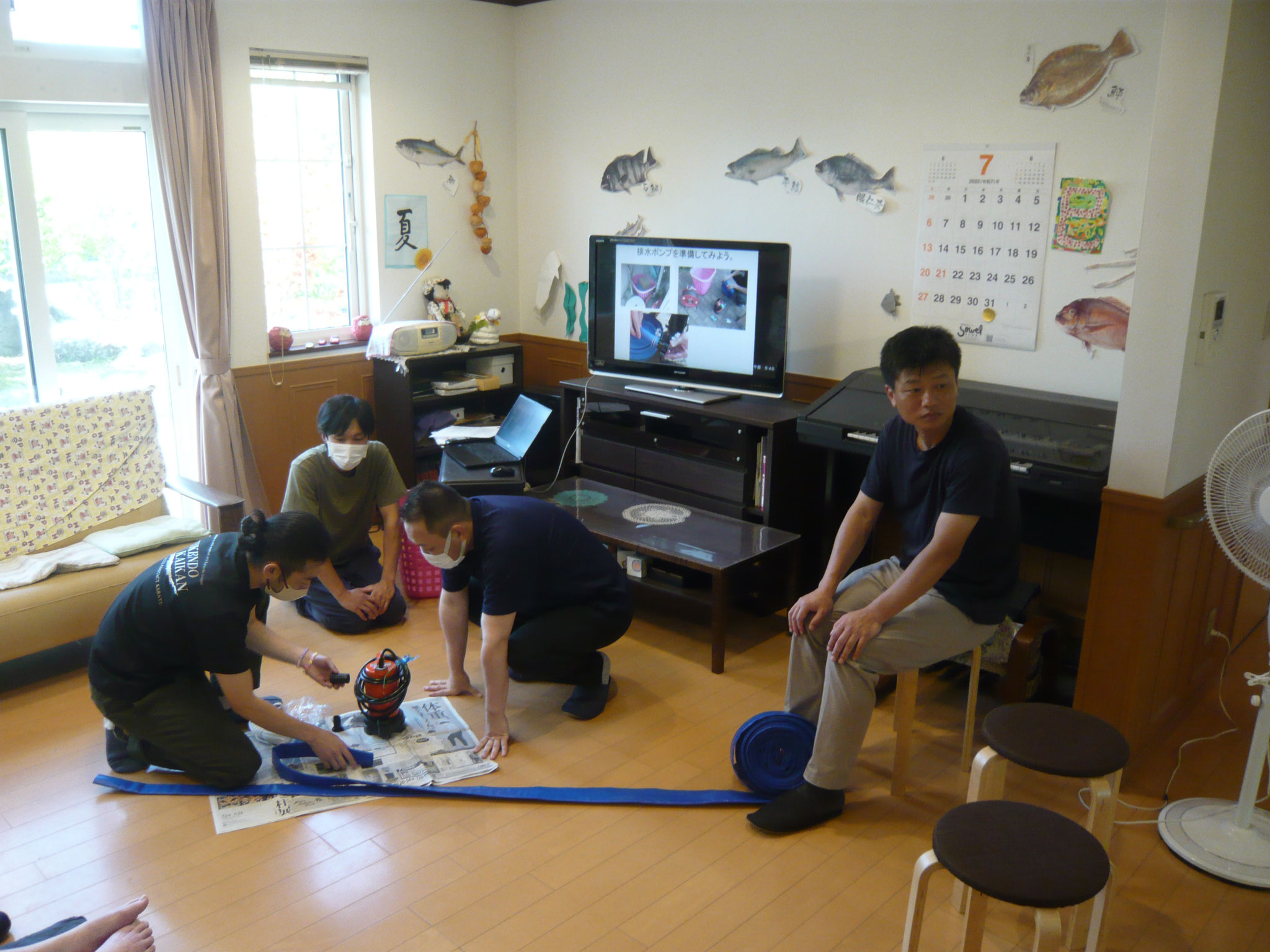 水害や停電などの災害に備え、避難行動や確認すべき連絡体制、排水ポンプの使用手順などを改めて全員で共有。「いざというときの備えは大事たいね」と、皆で真剣に確認し合う時間となりました。