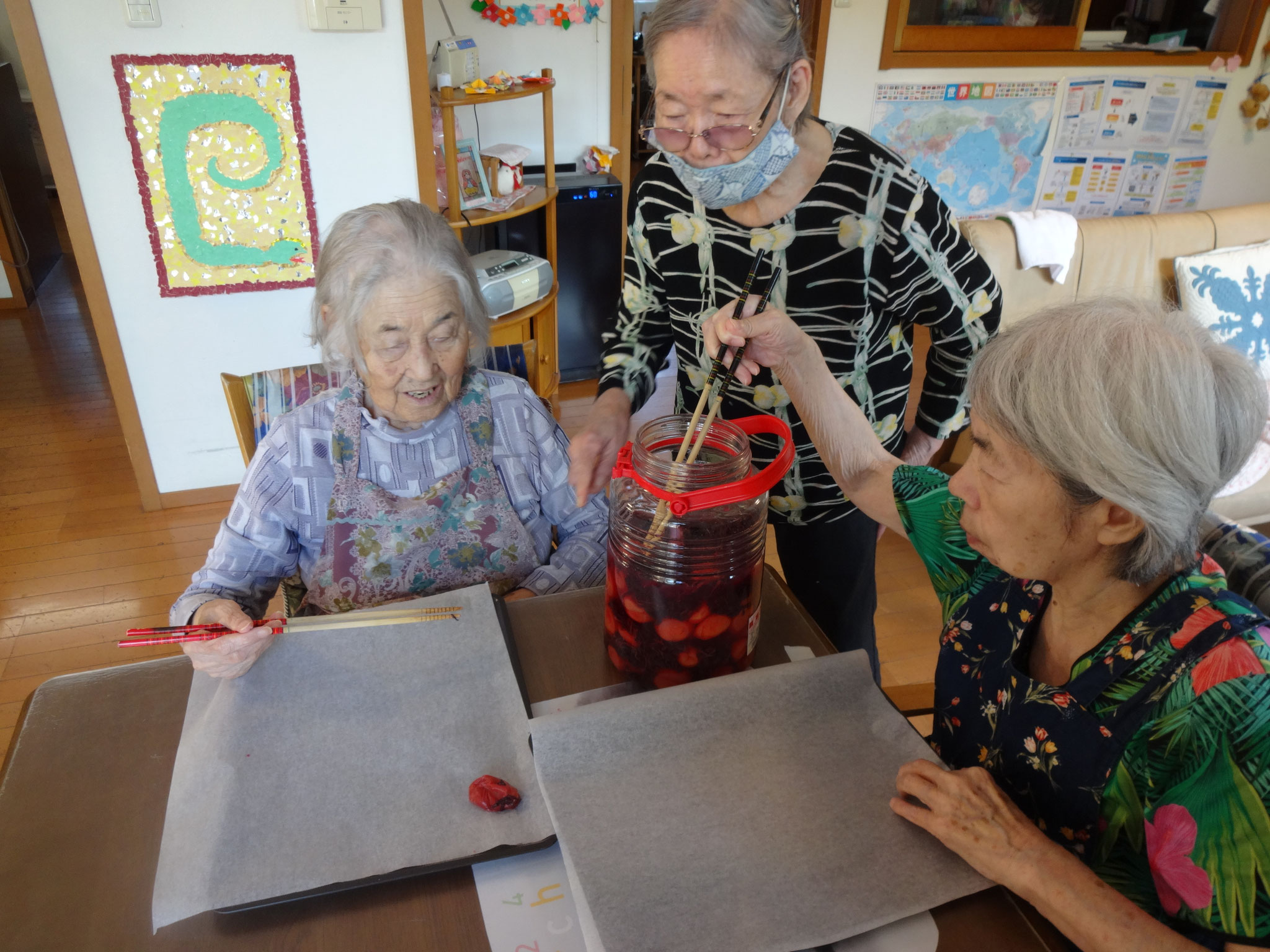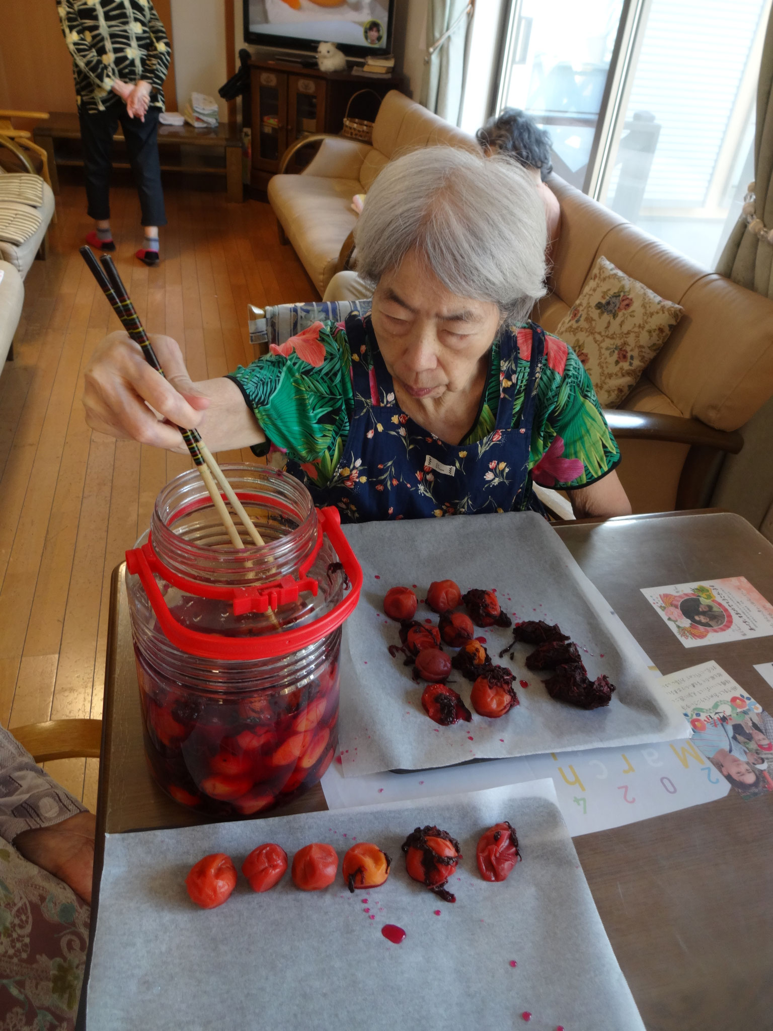 今年も、グループホームの庭にある梅の木にたくさんの実がなりました♪