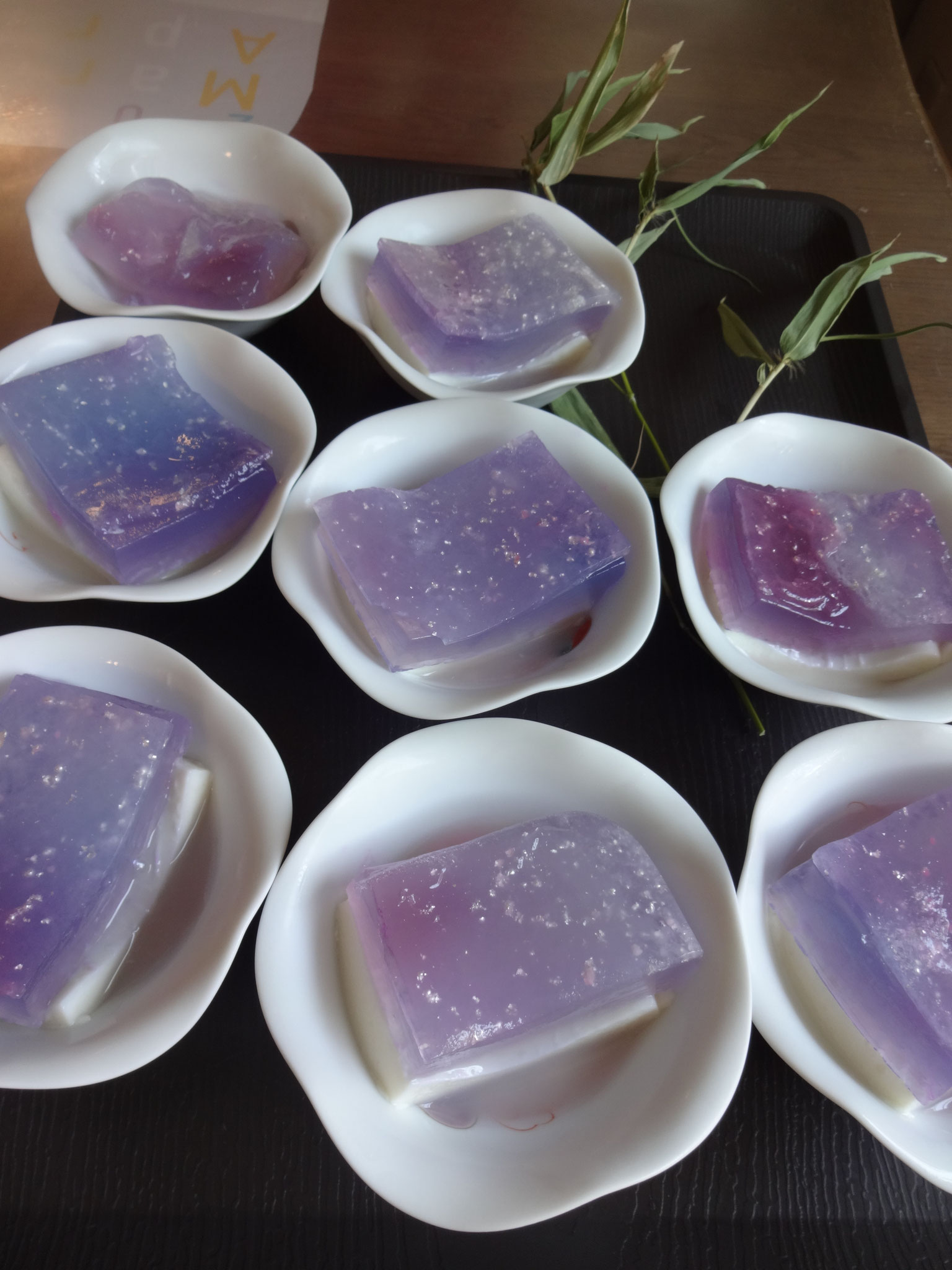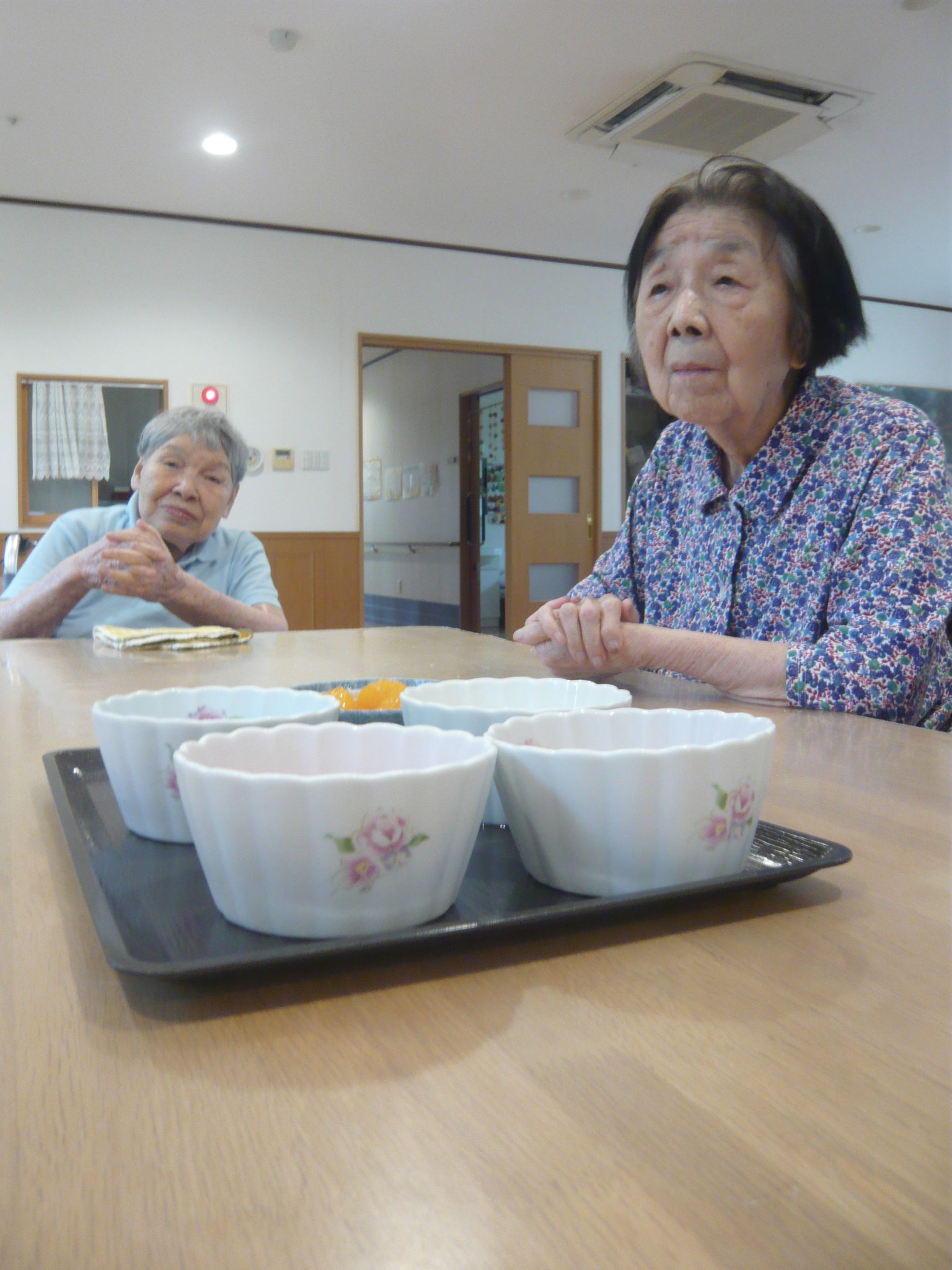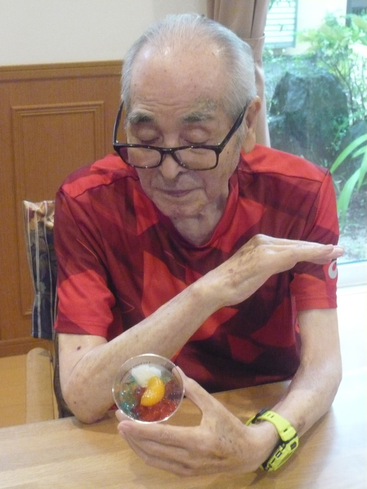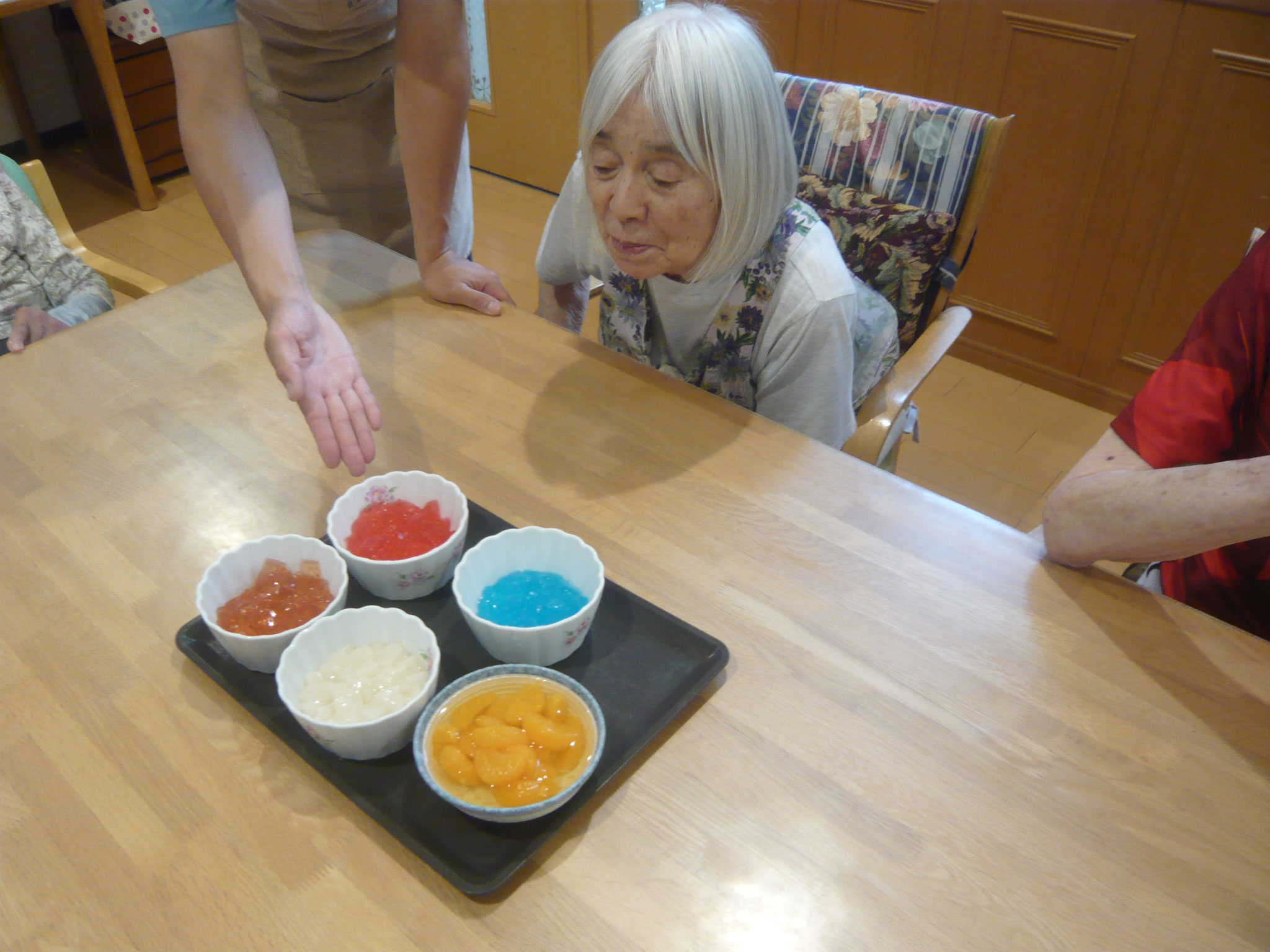 「この色、きれいね」「透き通っとるのが涼しか〜」と、楽しそうに材料を混ぜたり、型に流し込んだりしました。出来上がったゼリーは見た目にも涼しく、大好評でした。