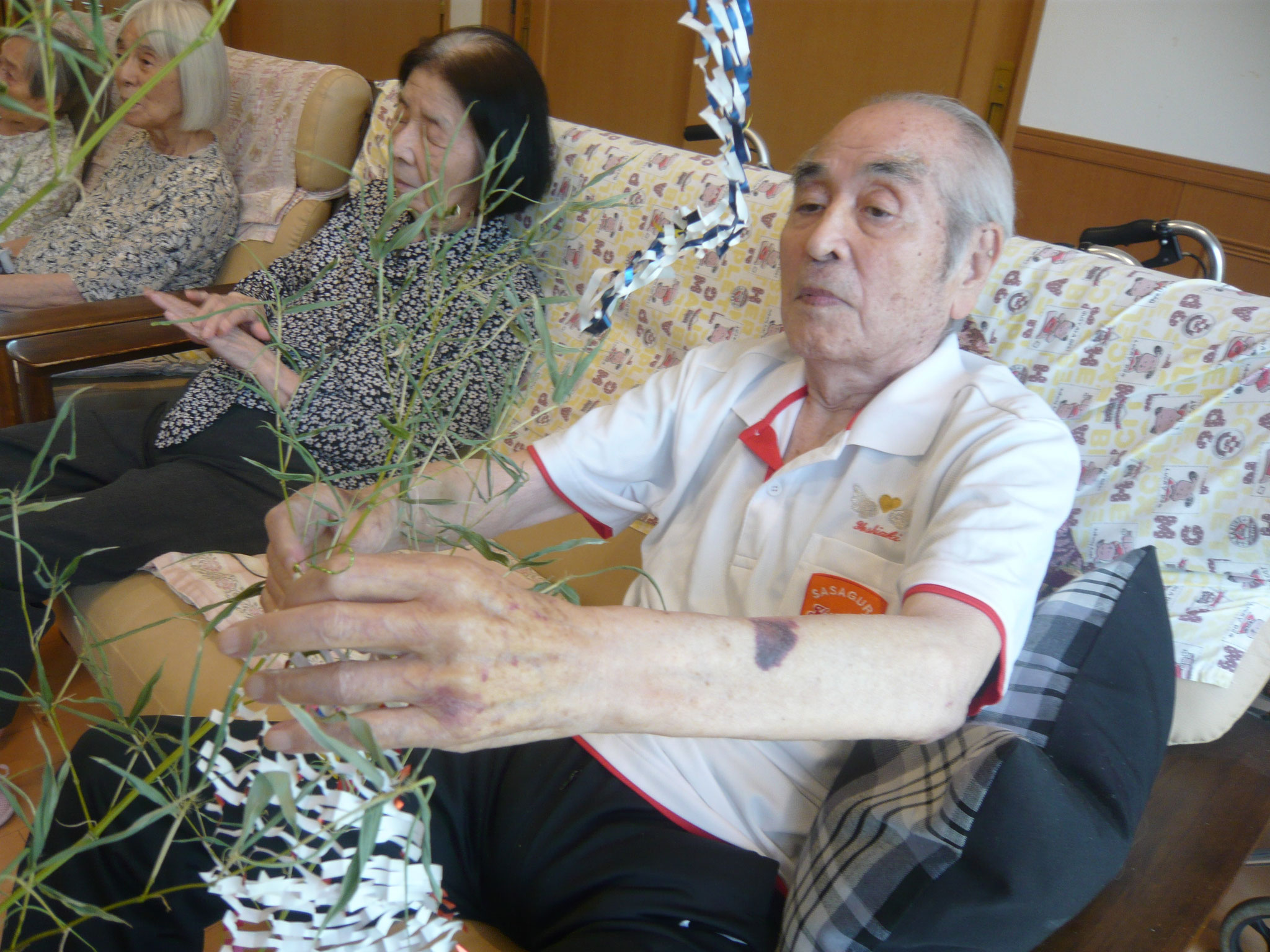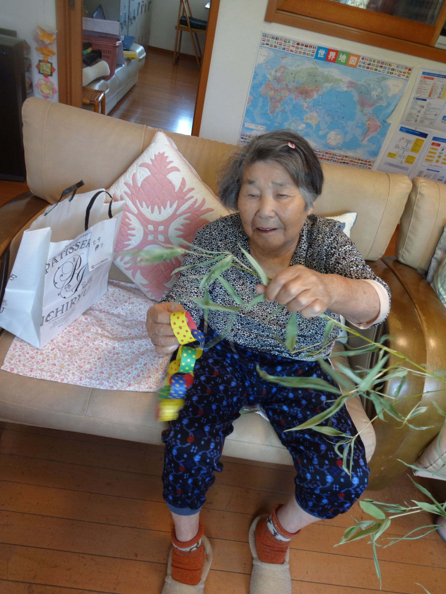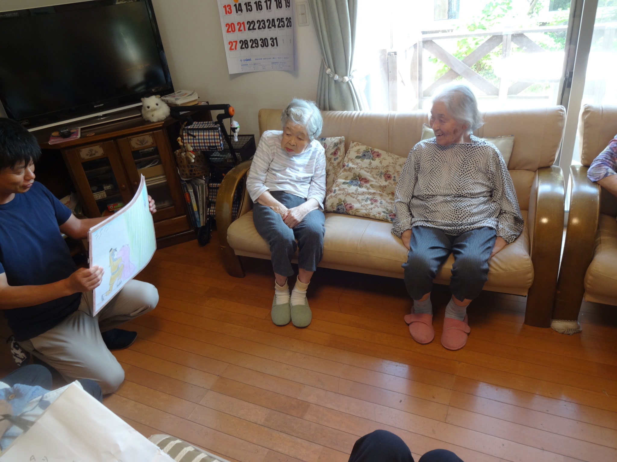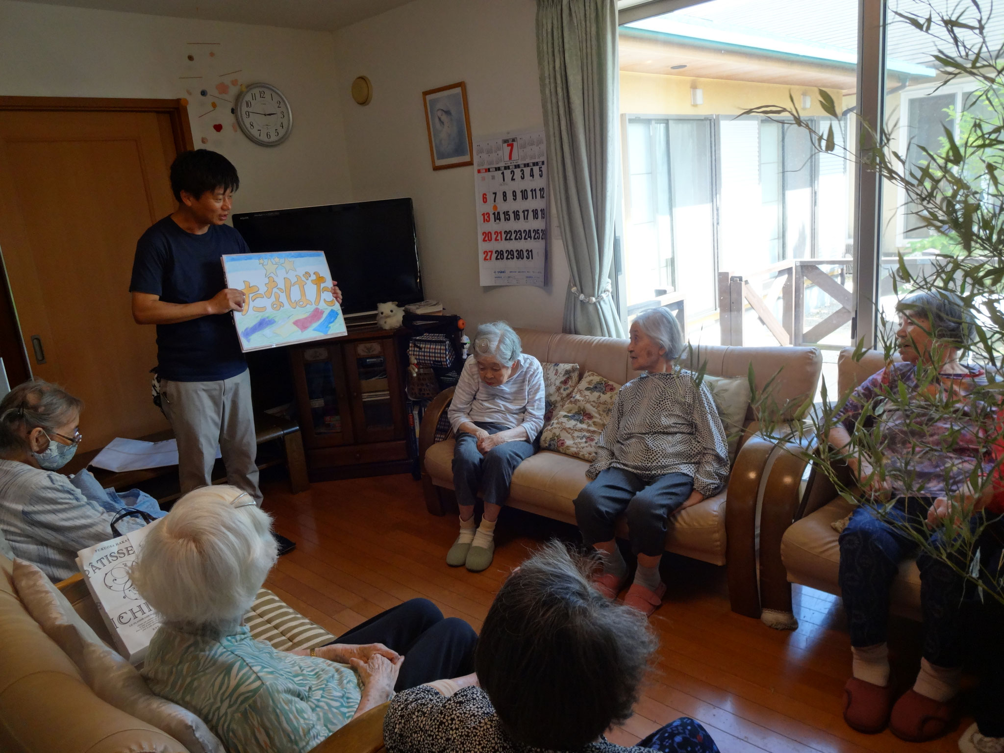 さらに、職員による七夕の紙芝居もあり、皆さん静かに耳を傾けながら「そげなん話やったとね。」と話に花が咲く場面もありました。