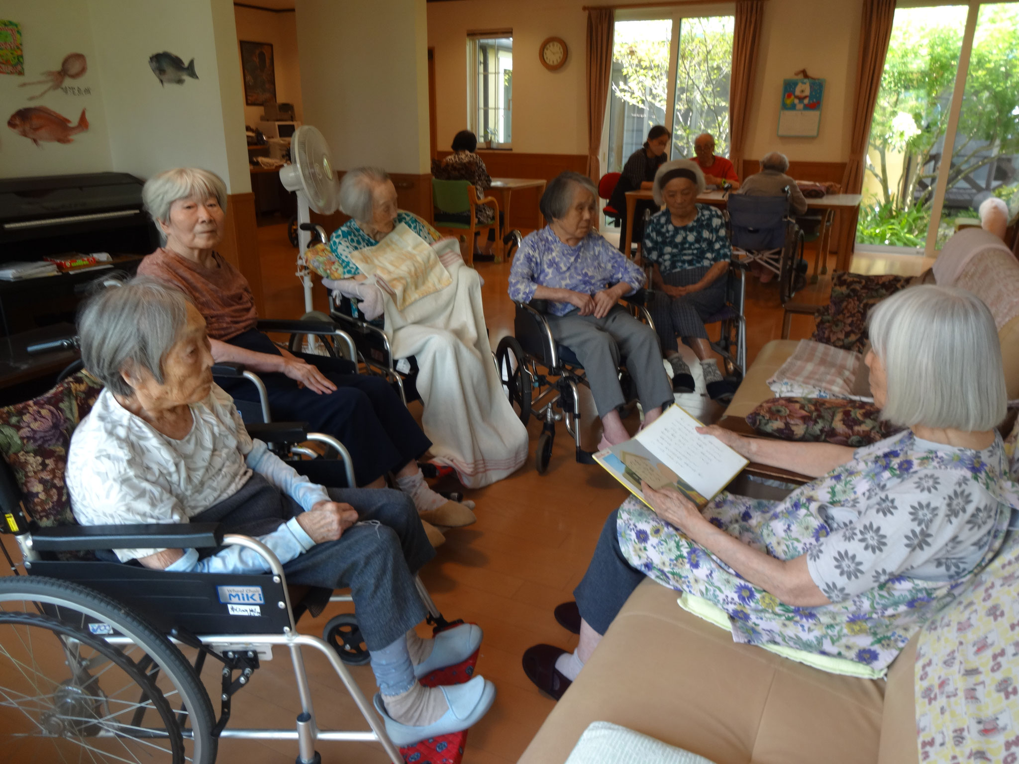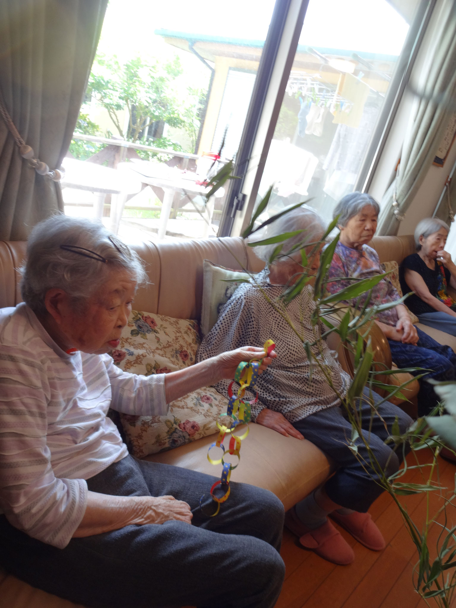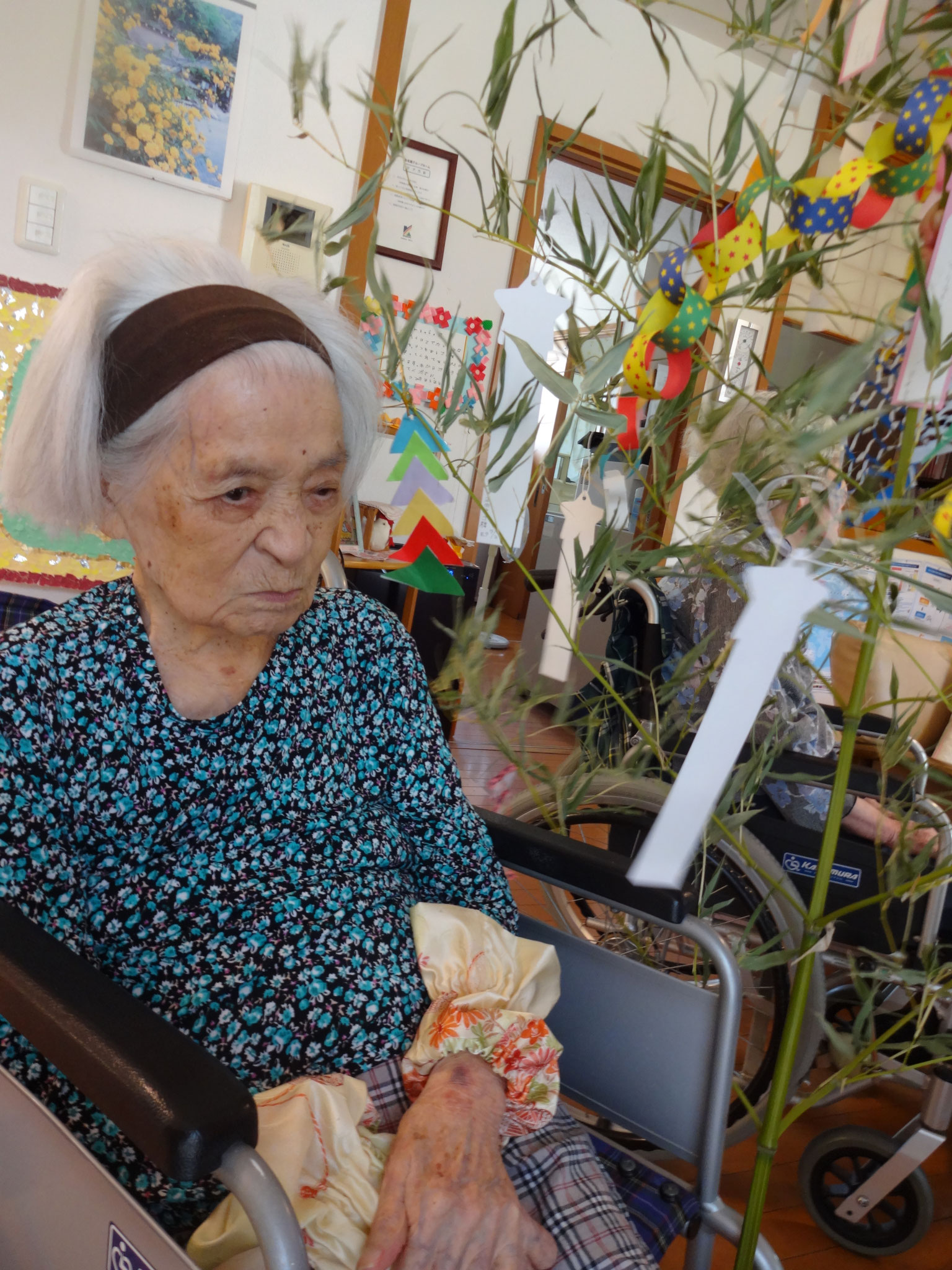 さらに、職員による七夕の紙芝居もあり、皆さん静かに耳を傾けながら「そげなん話やったとね。」と話に花が咲く場面もありました。