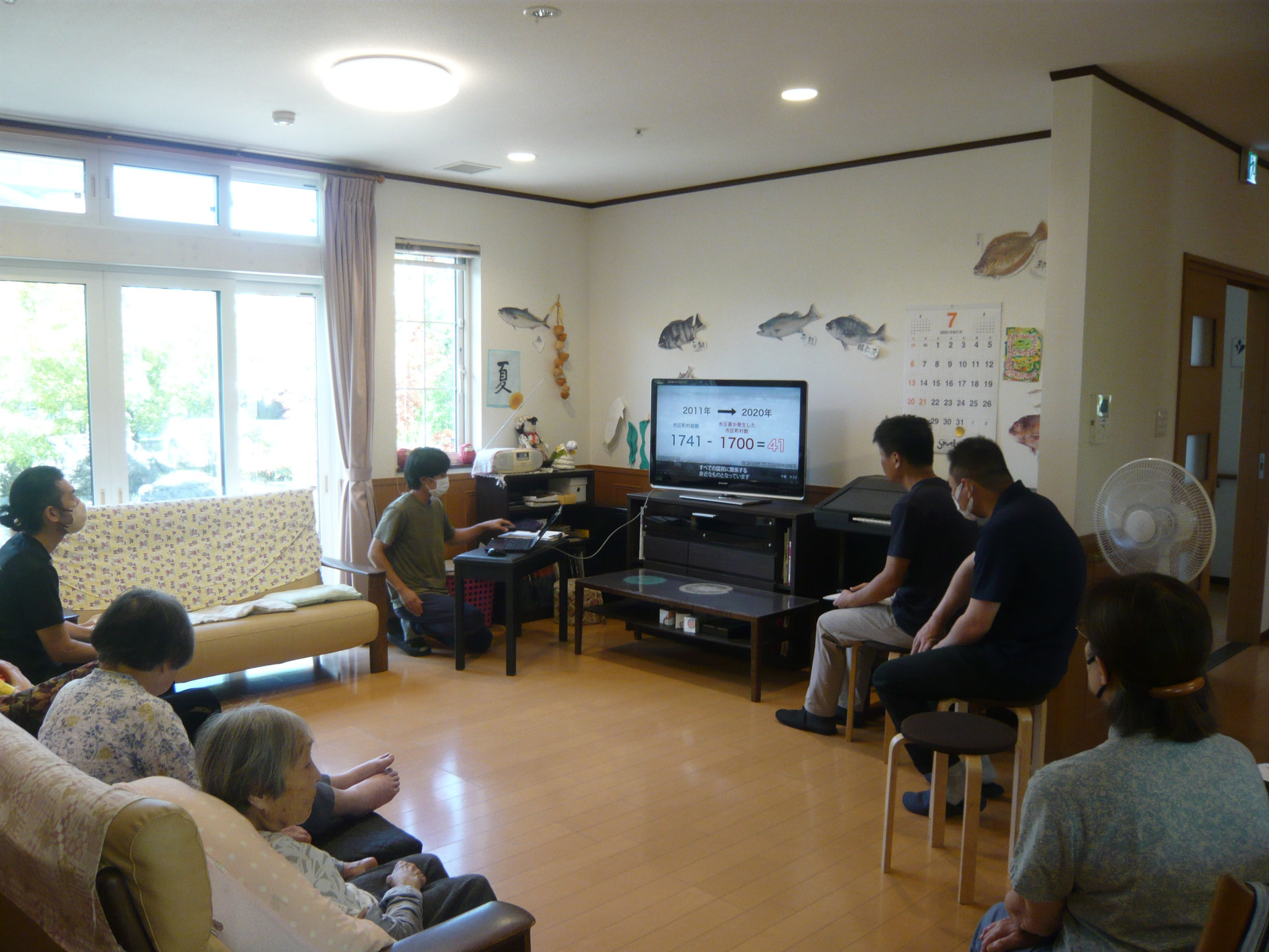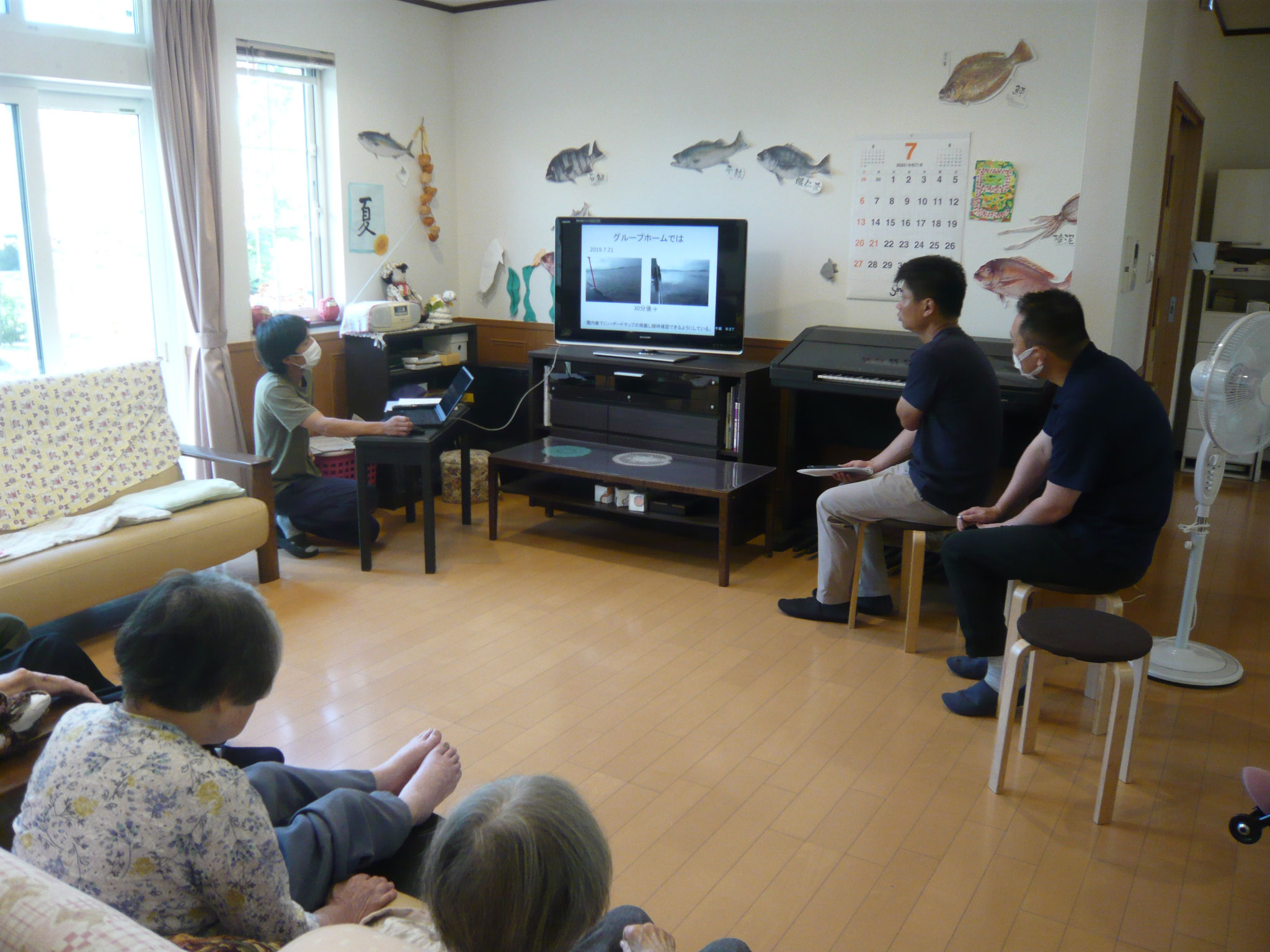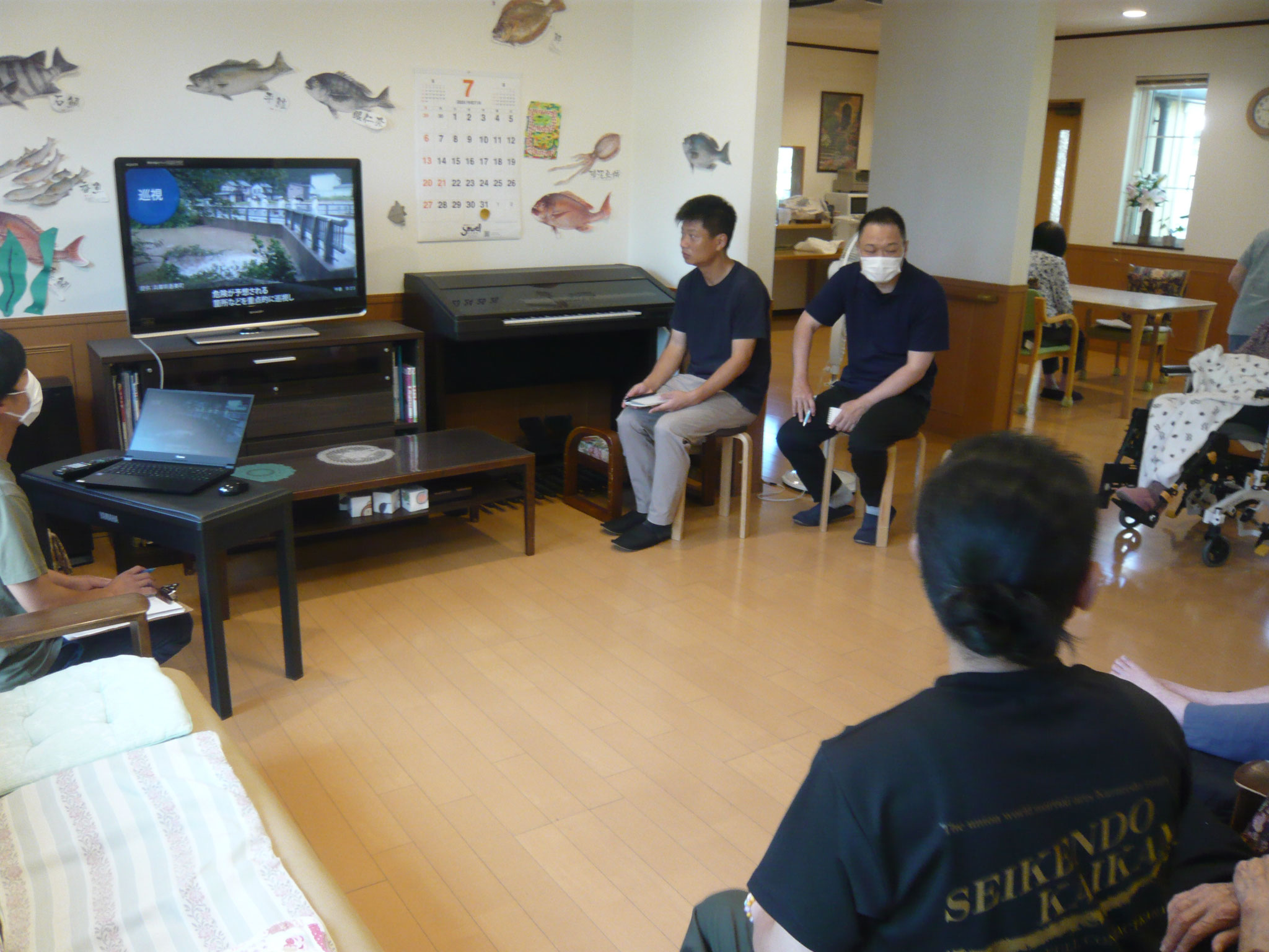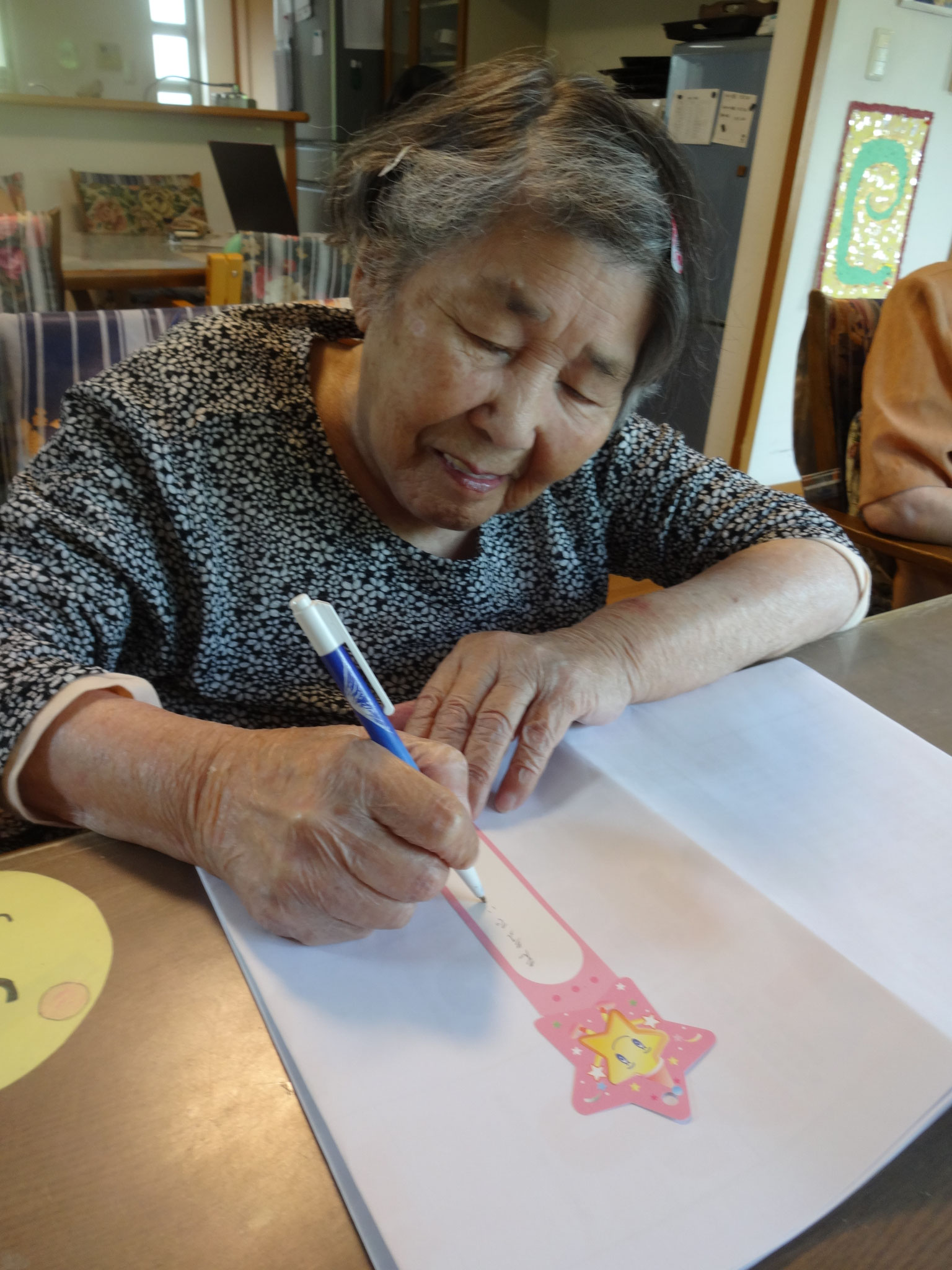さらに、職員による七夕の紙芝居もあり、皆さん静かに耳を傾けながら「そげなん話やったとね。」と話に花が咲く場面もありました。
