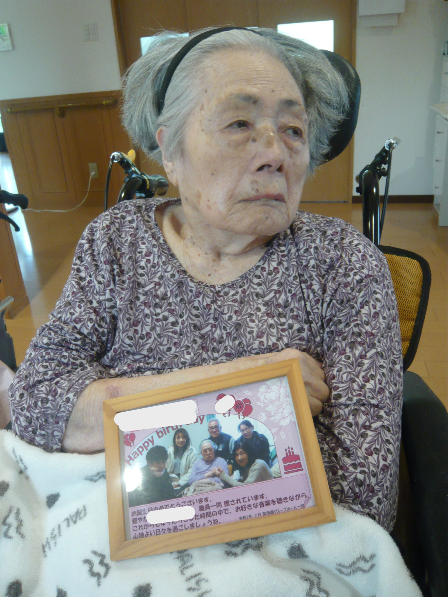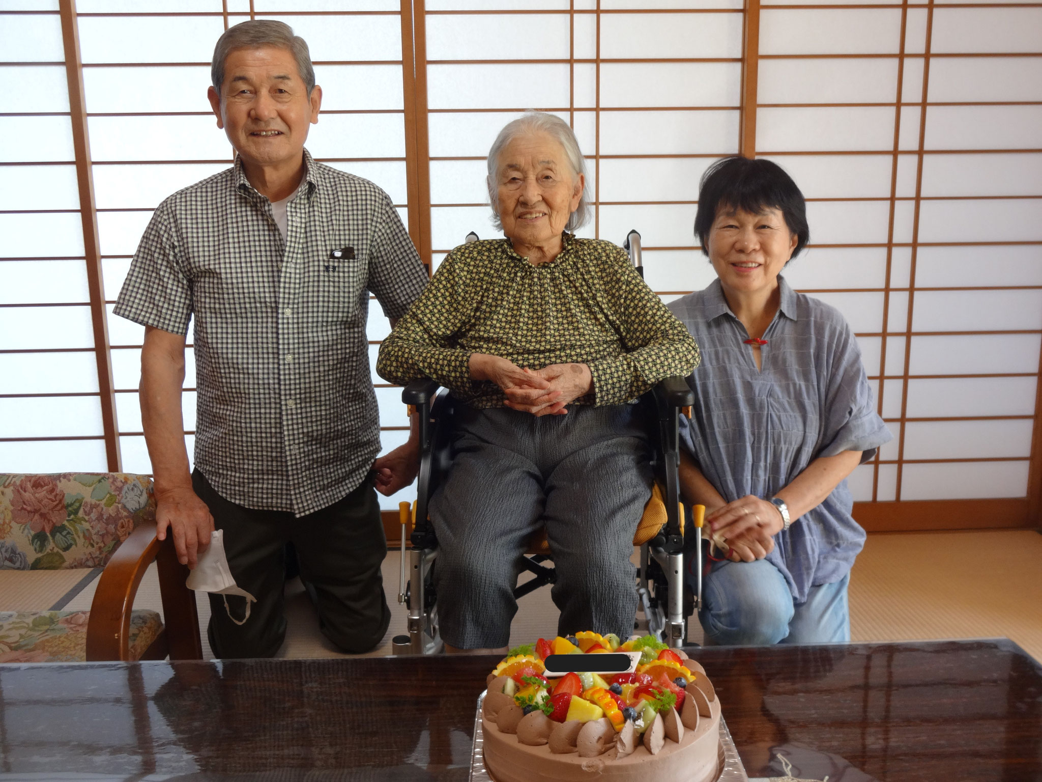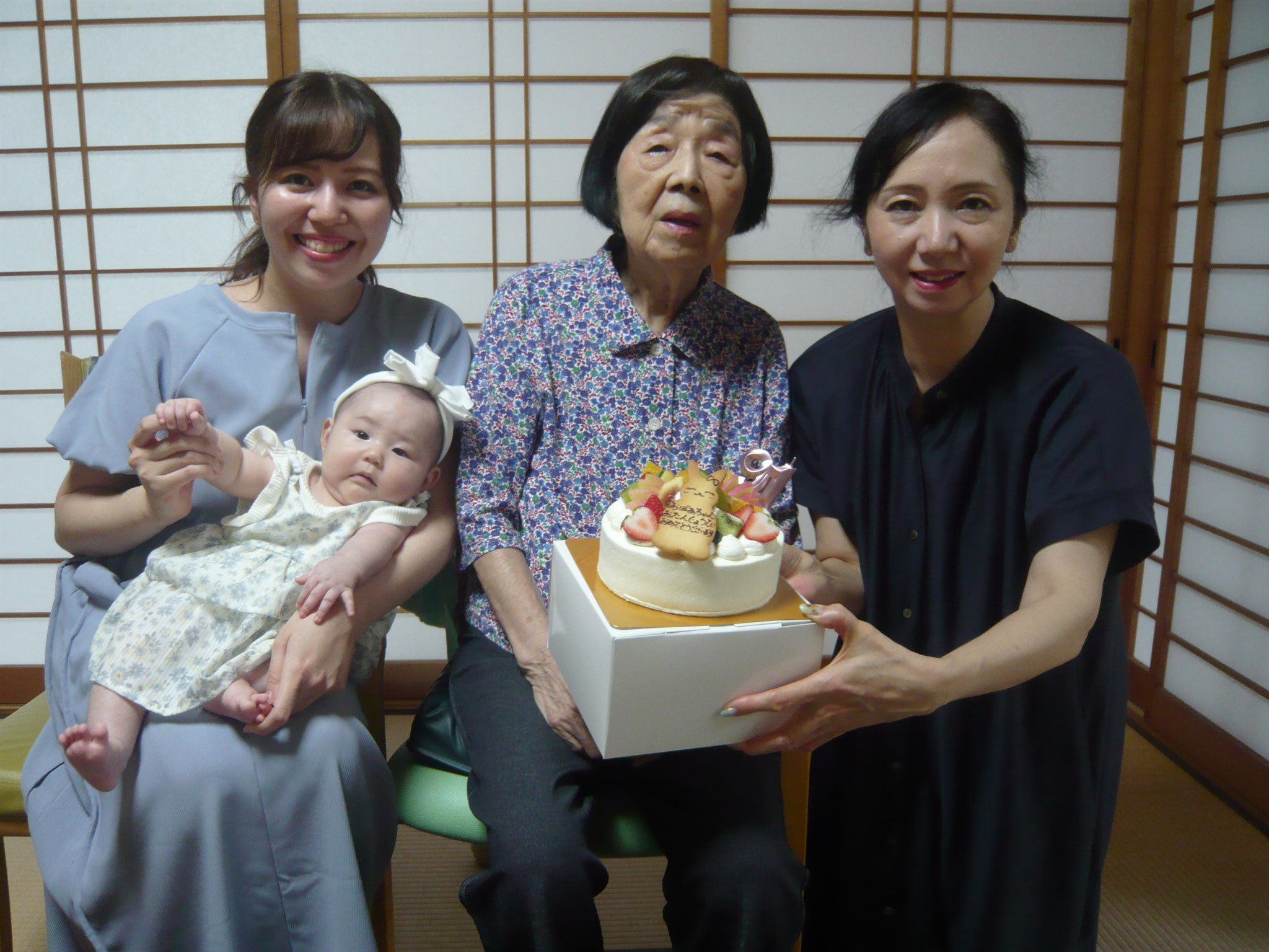 今月は1名の利用者様が誕生日を迎えられました。誕生日当日には、娘さんとお孫さん、ひ孫さん、3世代そろってのご面会。笑顔と喜びに包まれた特別な時間となりました。