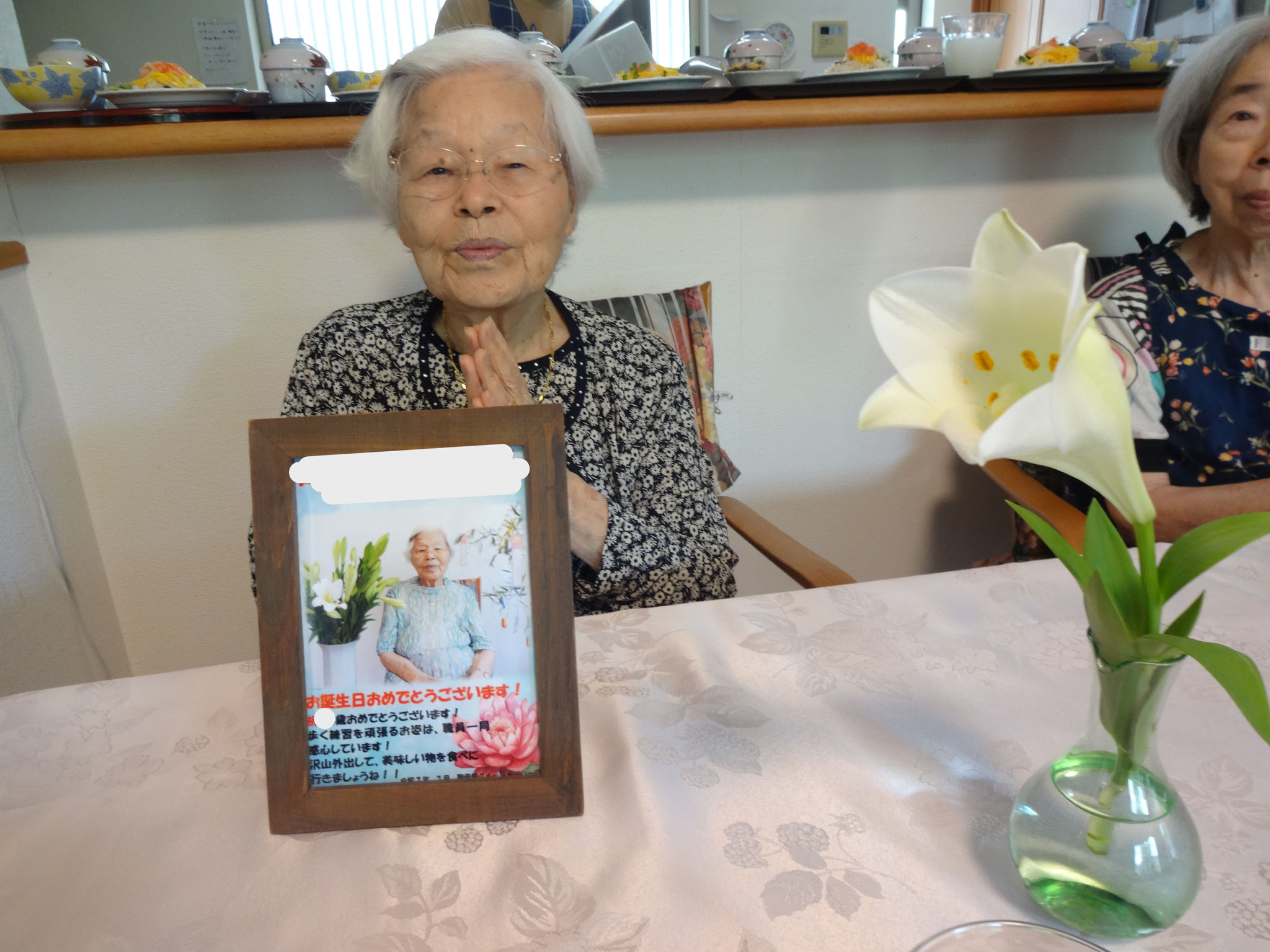 「こんなに祝ってもらえてうれしか~」「また一年、元気に過ごしたいね」と笑顔で話される姿に、職員もあたたかい気持ちになりました。