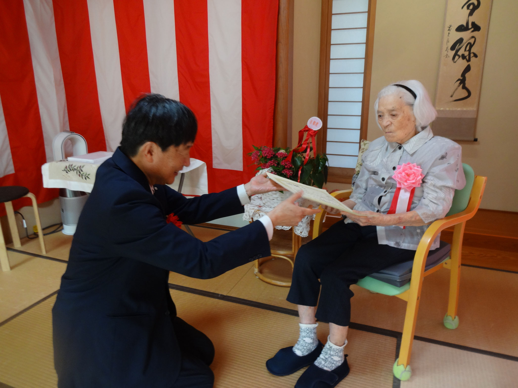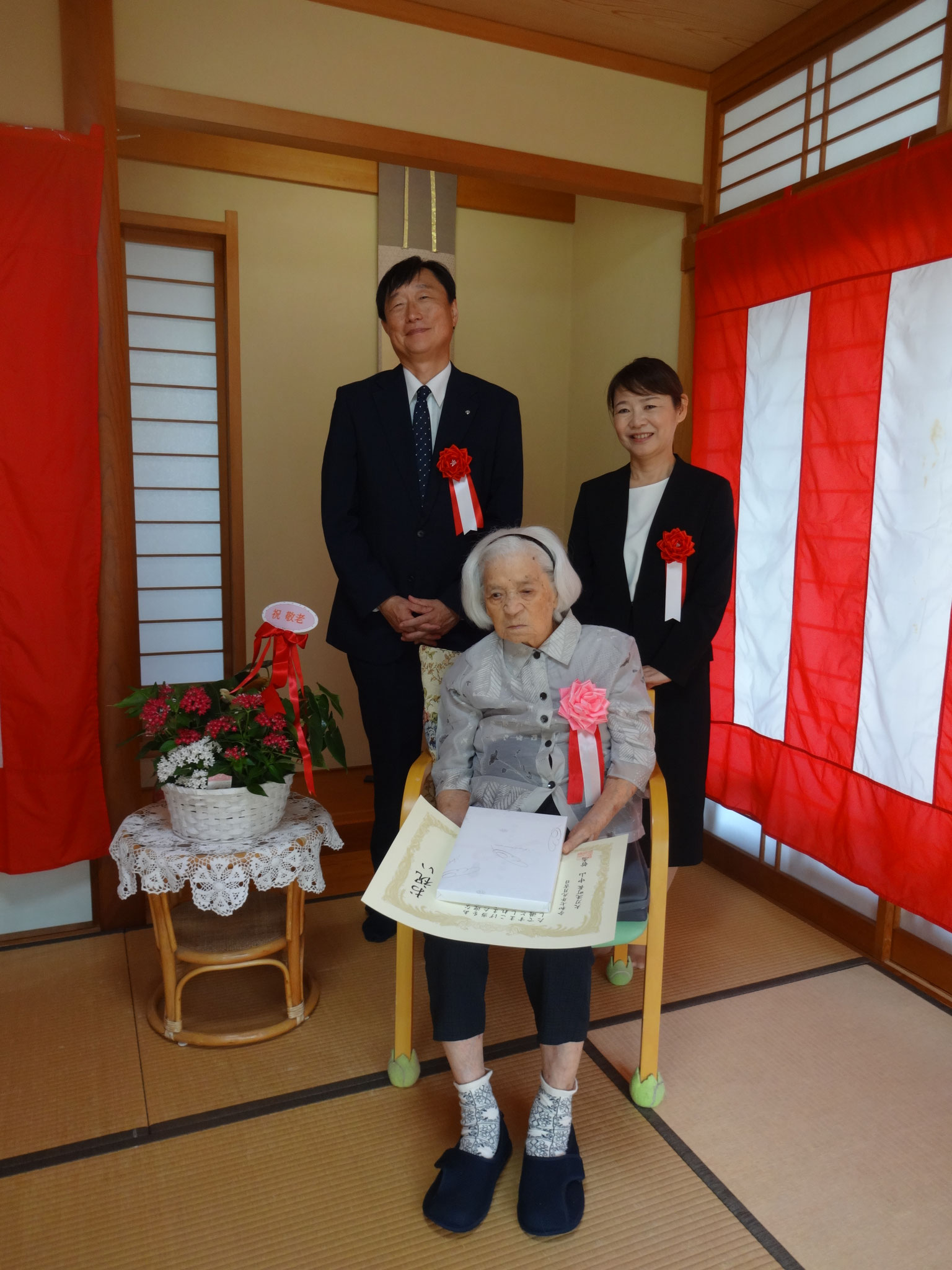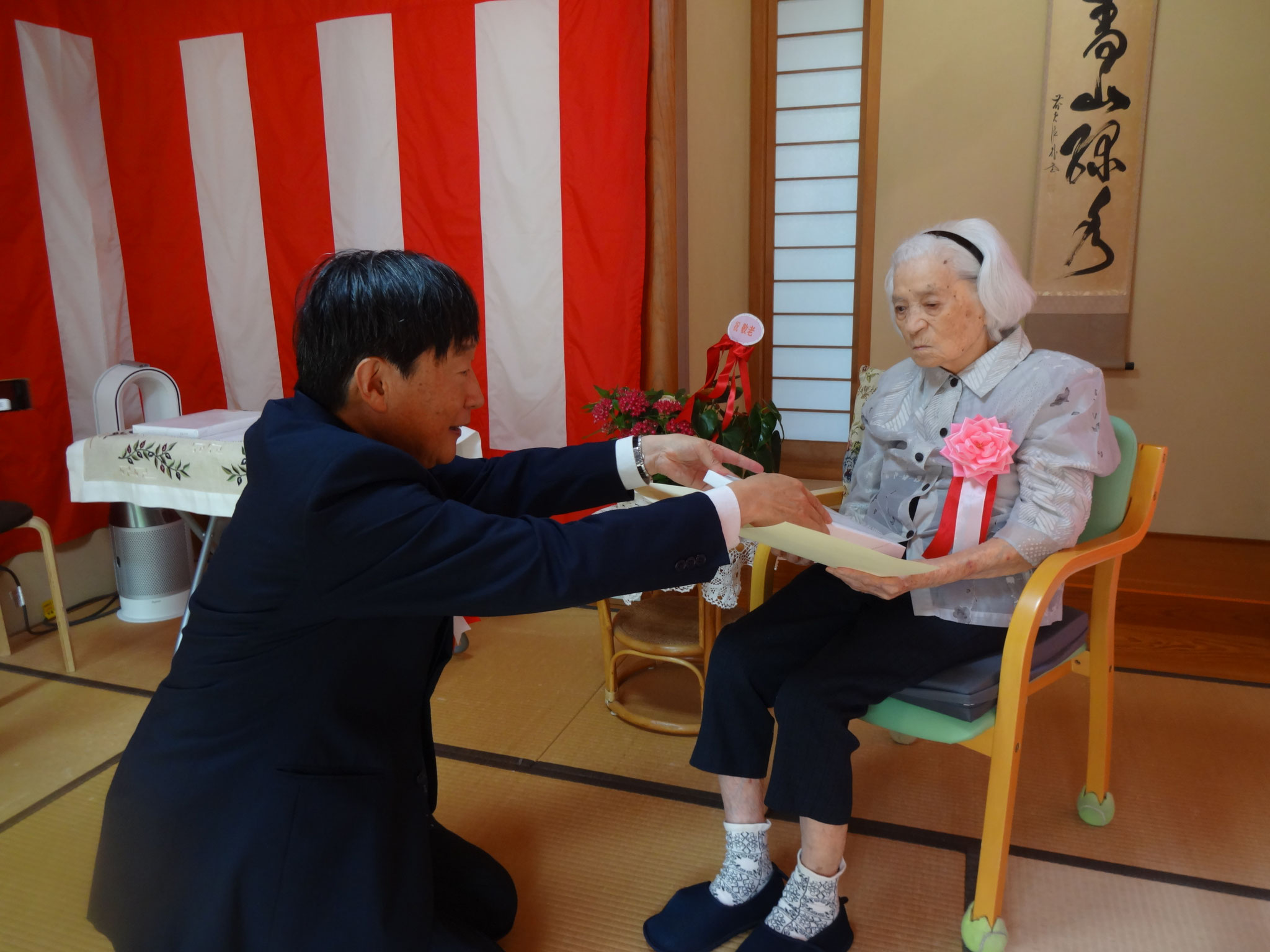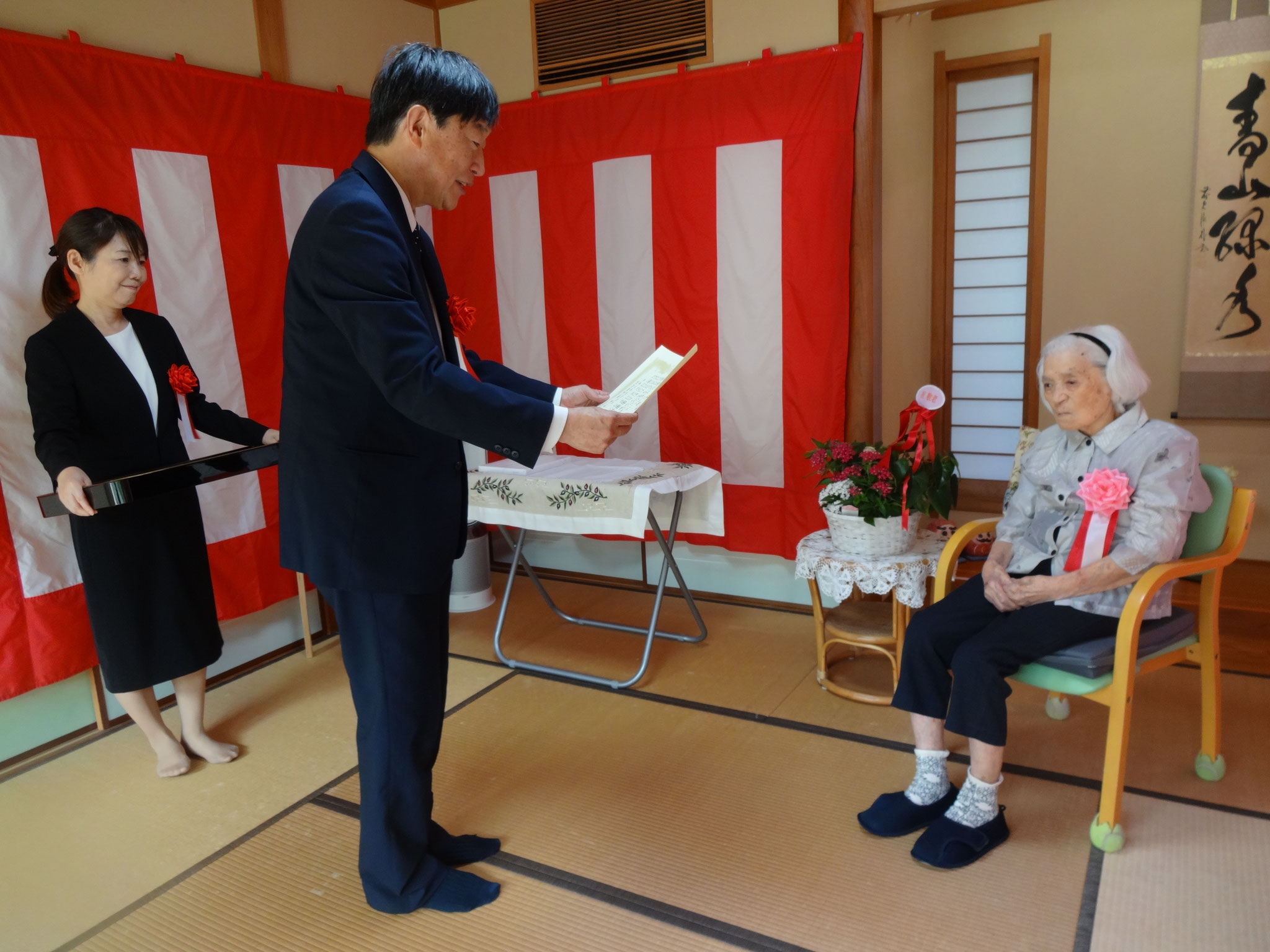 「これからも元気で長生きしてくださいね」との言葉に会場は和やかな雰囲気に包まれました。
