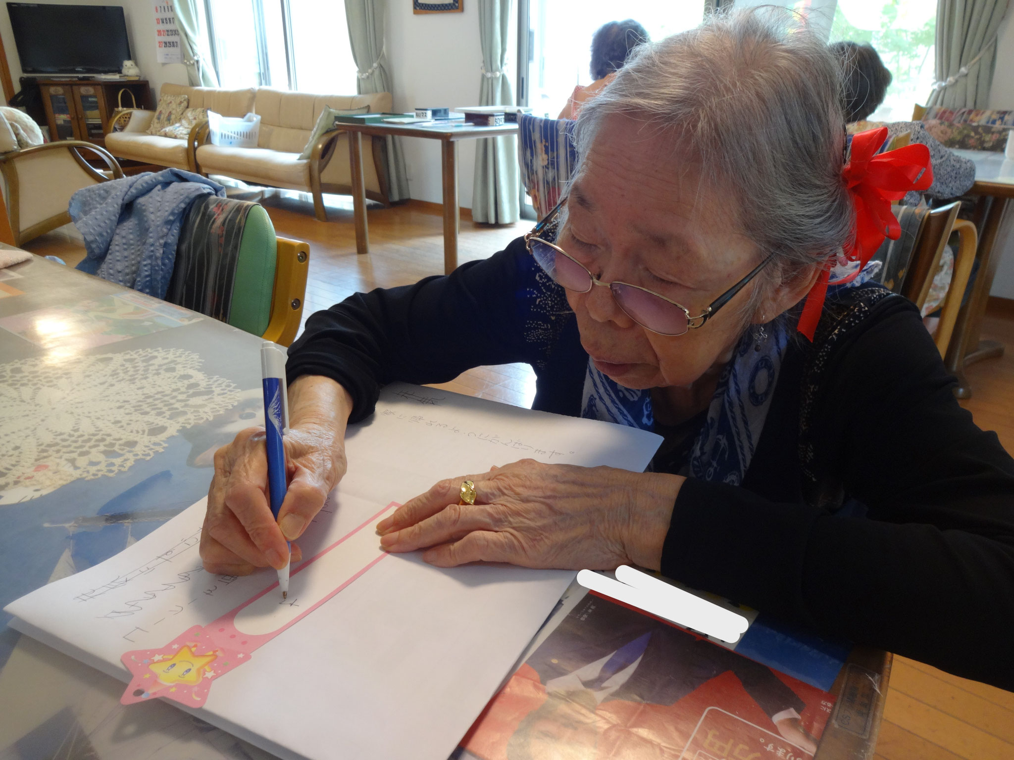 今月は1名の利用者様が誕生日を迎えられました。手作りのカードと歌でお祝いし、笑顔いっぱいの誕生日会になりました。