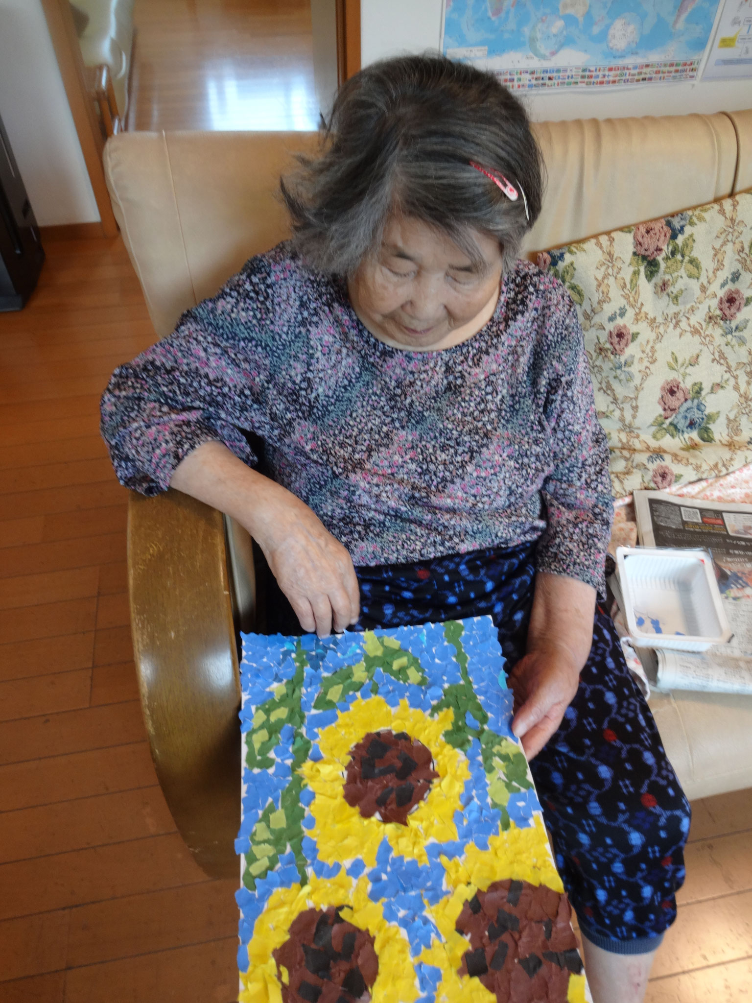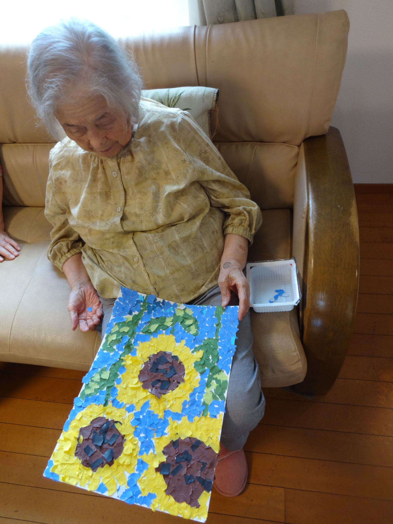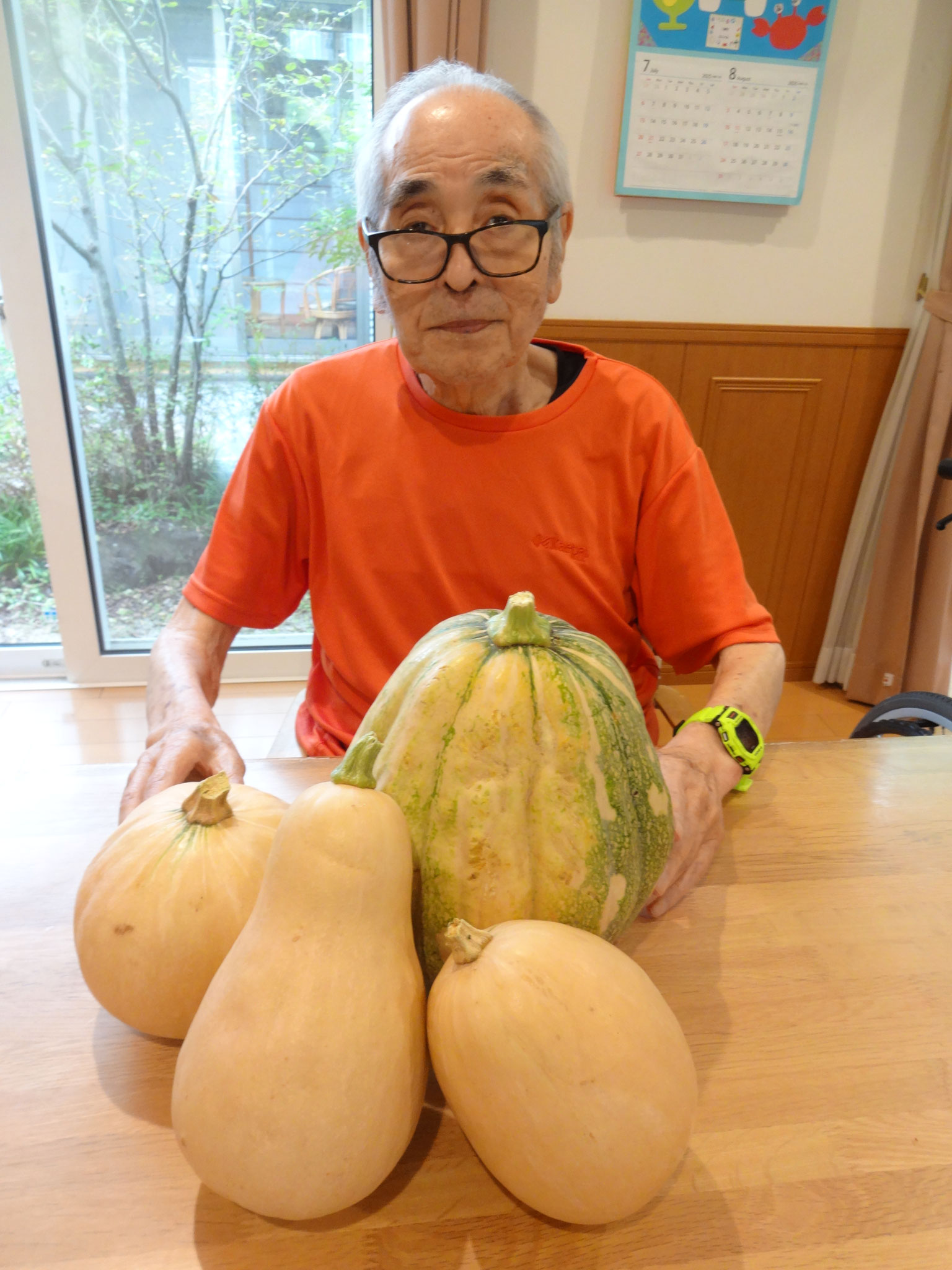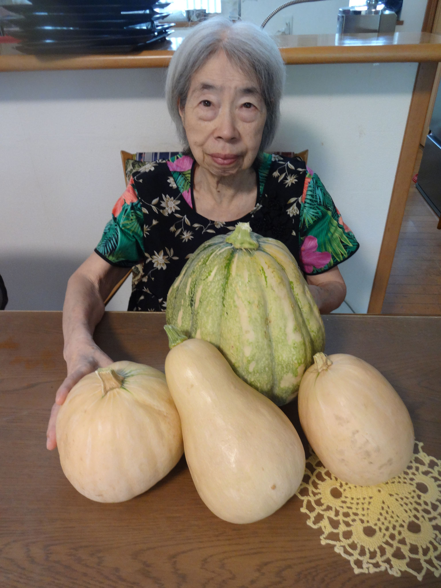 また、ひまわりの貼り絵作りや、頂いた大きなカボチャとの記念撮影も行い、笑い声の絶えない日々となりました。