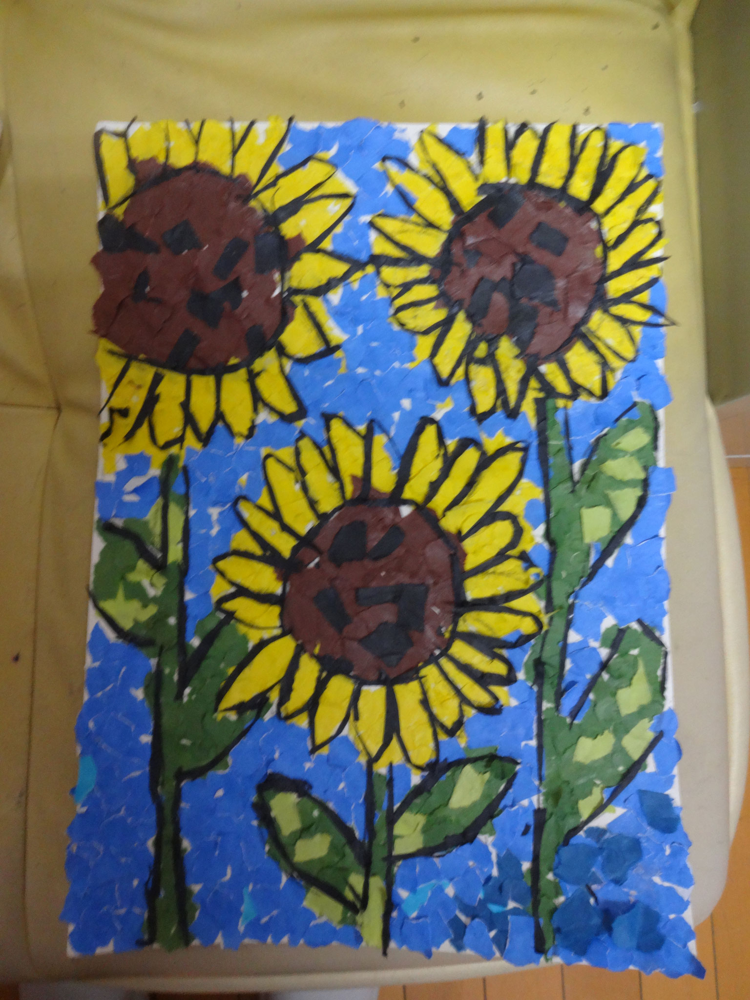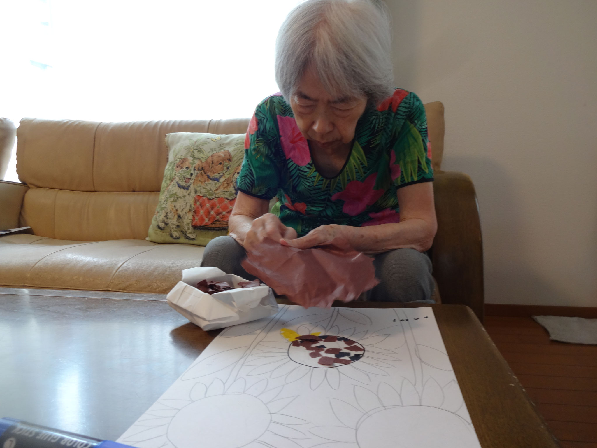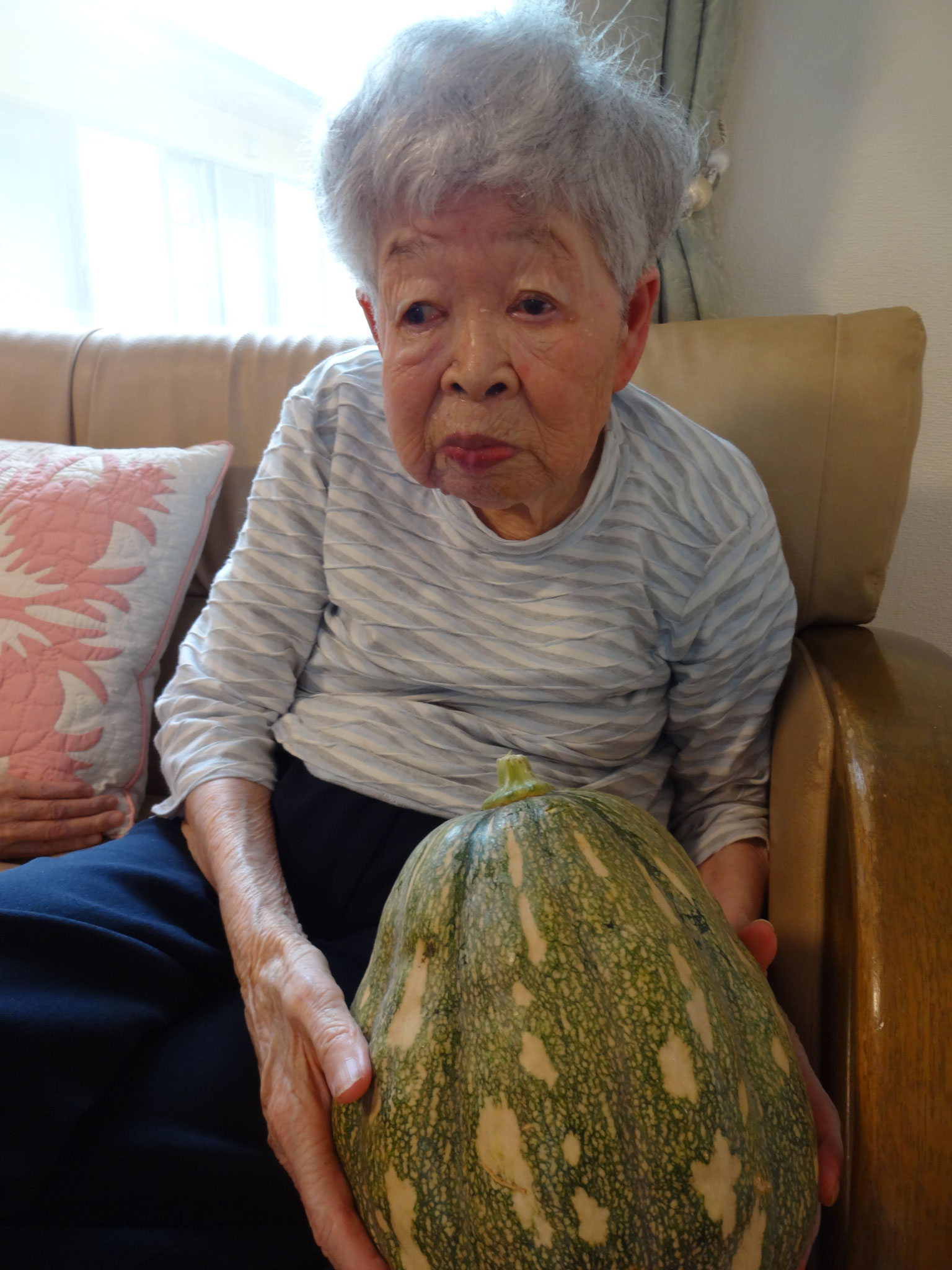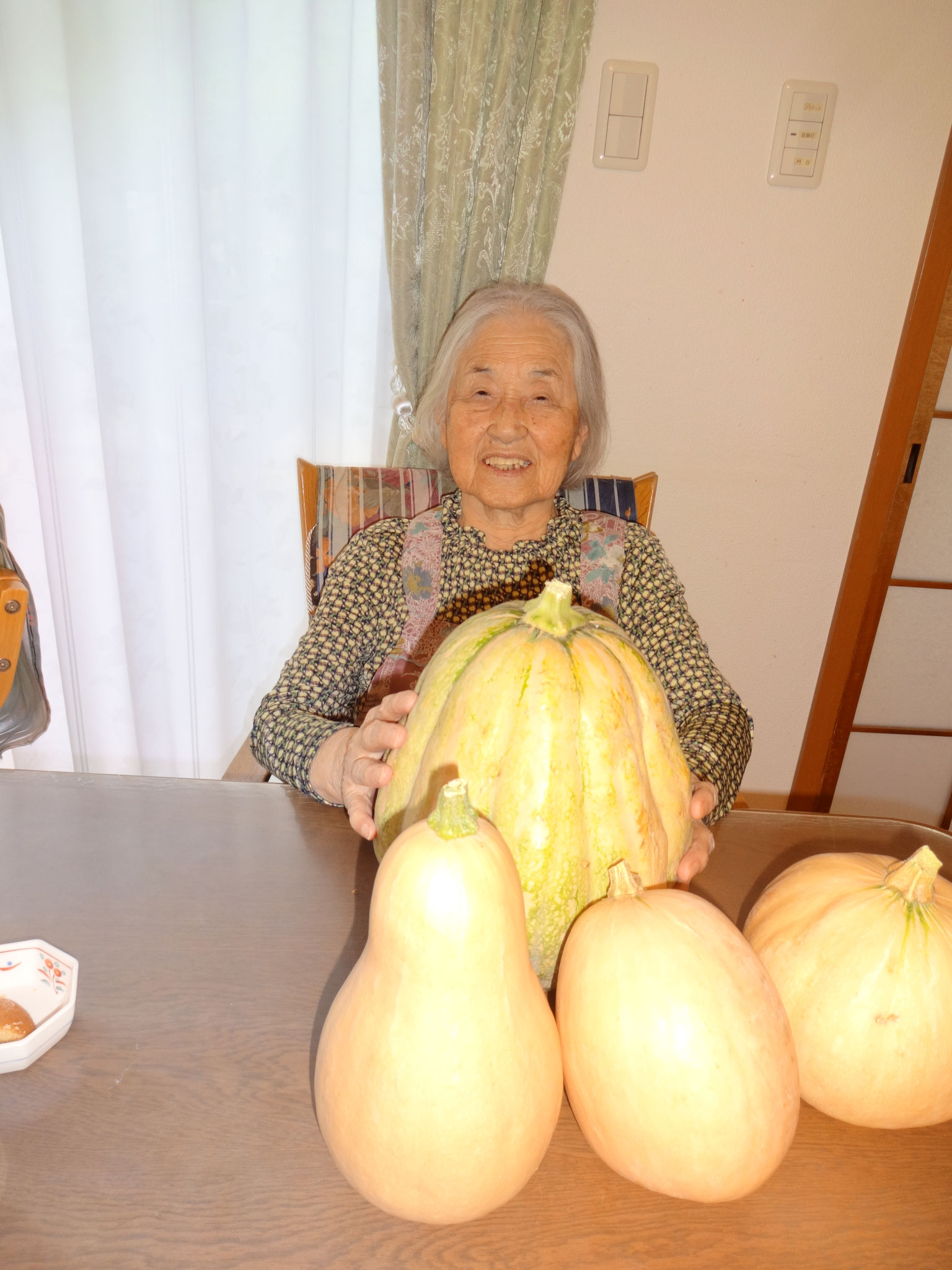 また、ひまわりの貼り絵作りや、頂いた大きなカボチャとの記念撮影も行い、笑い声の絶えない日々となりました。