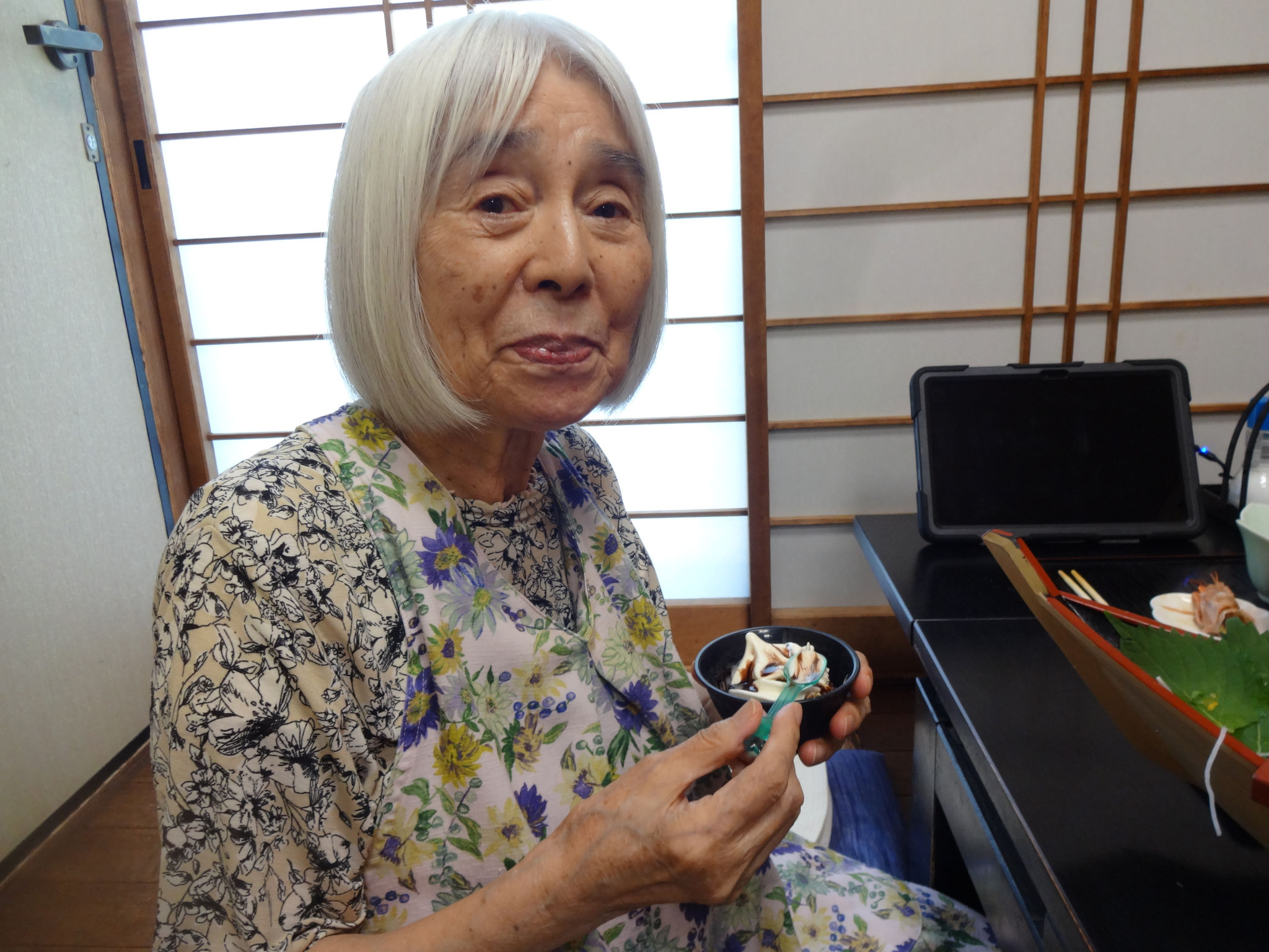 また、離れて暮らすご家族からプレゼントが届くこともありました。「まあ、うれしか〜」「こんなことしてくれるとね」と、目を細めながら受け取られていた姿が印象的でした。